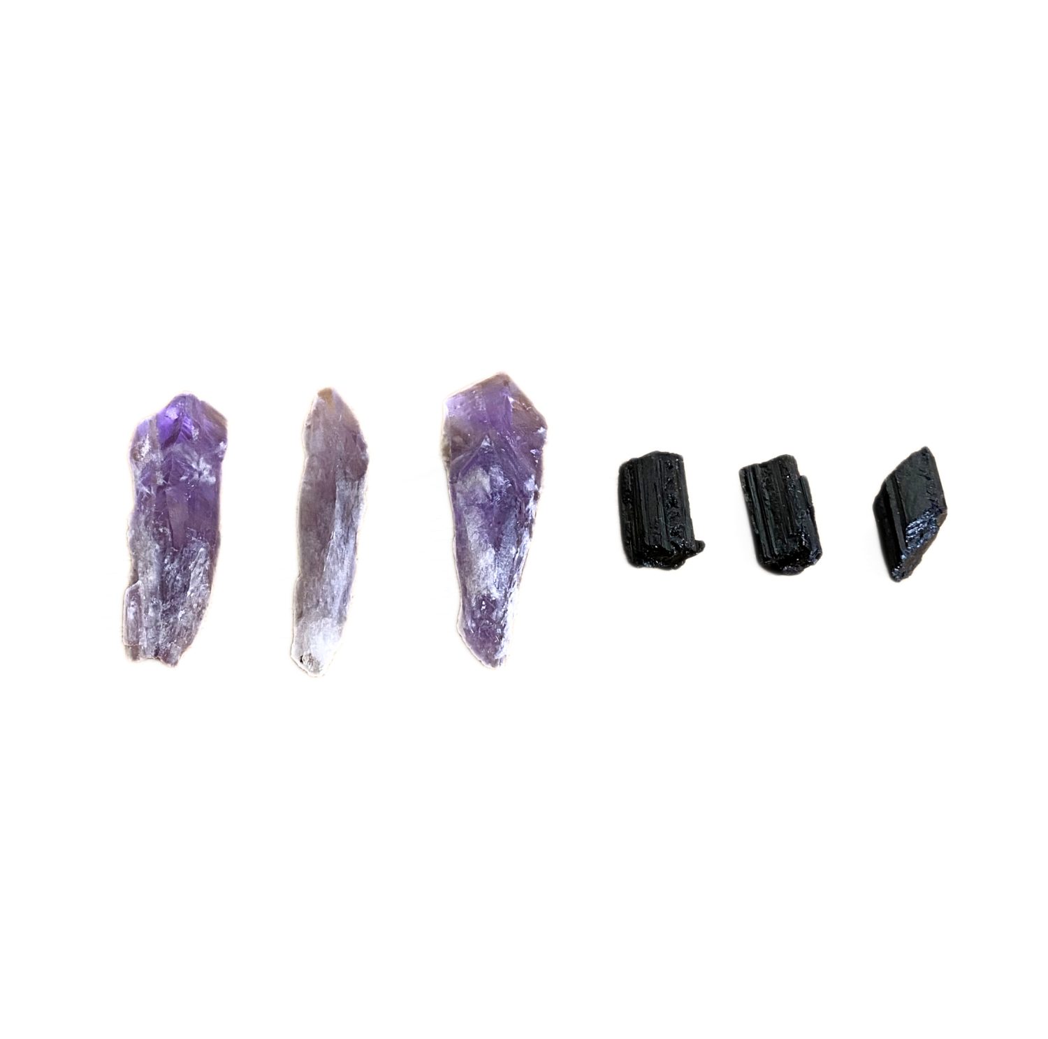 Kit 3 Pontas de Ametista + 3 Bastões de Turmalina Negra | Proteção, Limpeza e Aterramento | Prosperity Minerais 💜⚫✨