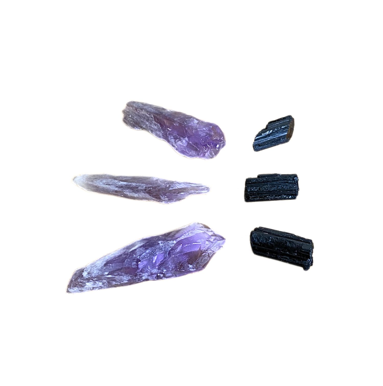 Cada kit contém 6 peças naturais, sendo 3 pontas de Ametista e 3 bastões de Turmalina Negra, com tamanhos aproximados ideais para uso prático no dia a dia. As peças são 100% naturais e preservam suas características originais, apresentando variações de forma, textura e tonalidade — tornando cada kit único e exclusivo 🌍