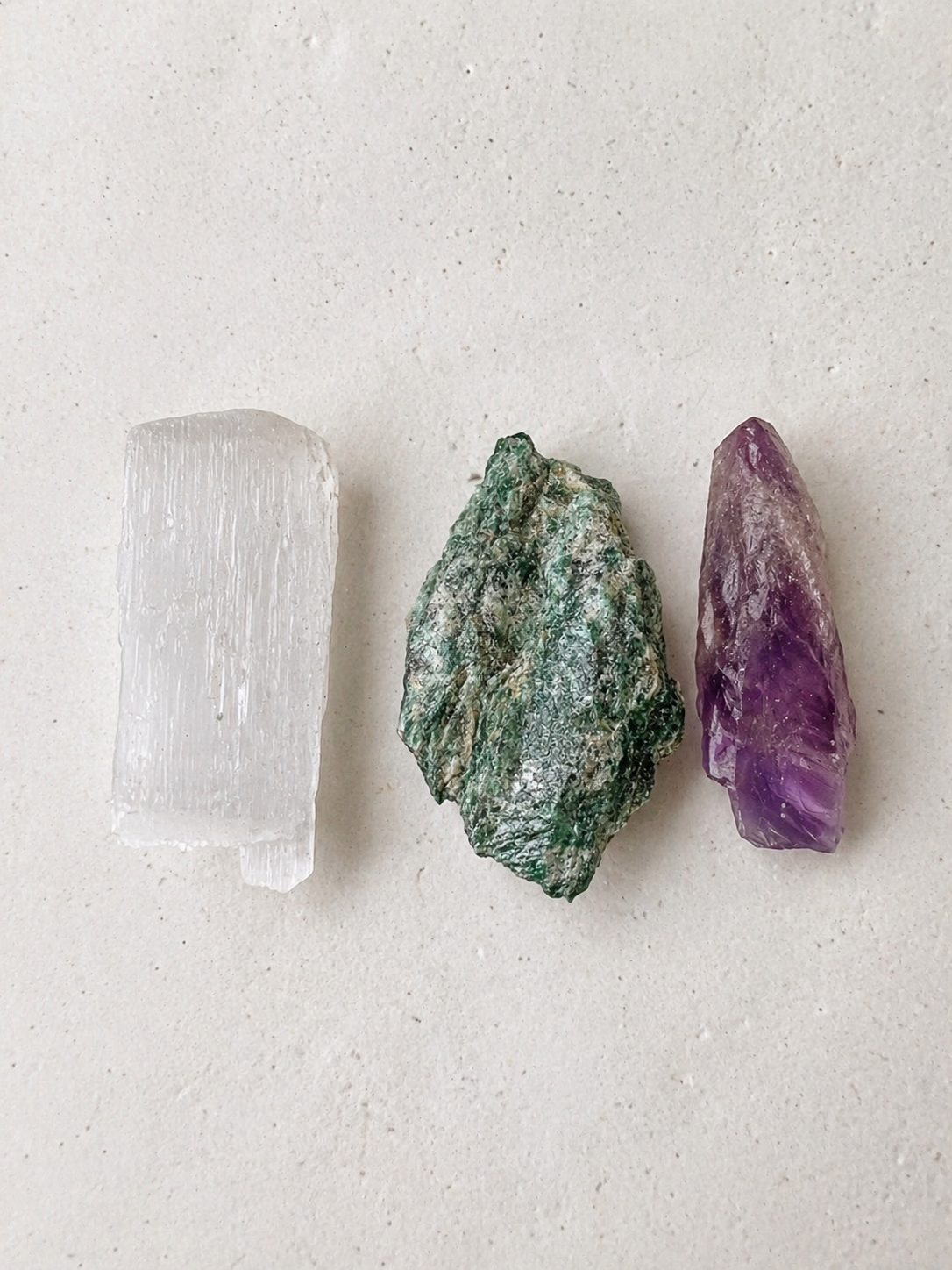 Ametista • Selenita Branca • Fuxita
