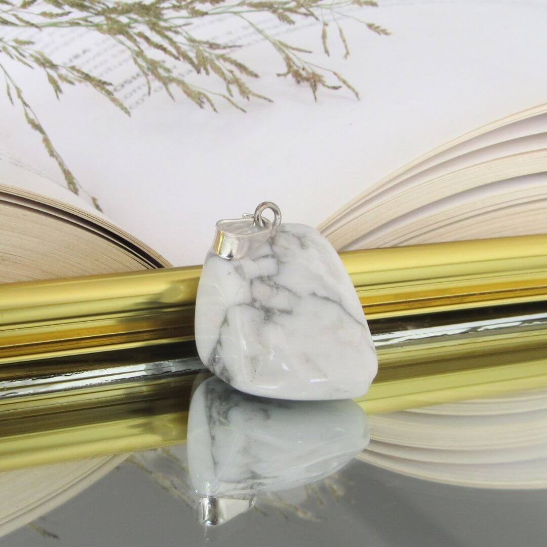- Acento de Cor: Destaque-se com as variações naturais de cores da howlita.